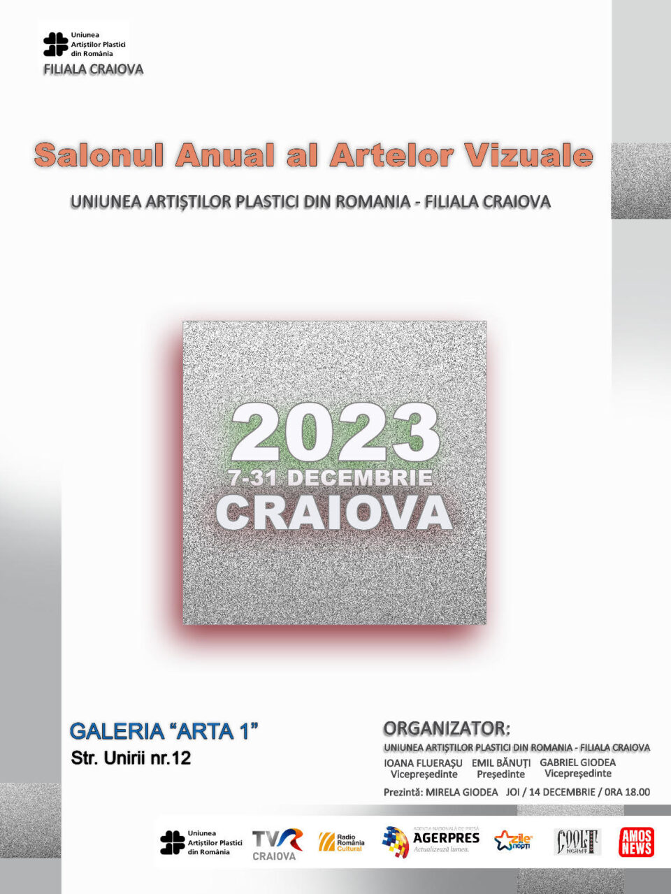 Filiala Craiova a Uniunii Artiștilor Plastici din România, organizează joi, 14 Decembrie 2023, ora 18.00, la Galeria Arta din Craiova, vernisajul expoziției de grup „SALONUL DE IARNĂ” a membrilor Filialei Craiova a UAP din România. Artiști expozanți: Mihail Trifan, Emil Bănuți, Valentin Boboc, Cătălin Solcan, Emilian Popescu, Lucian Irimescu, Gabriel Giodea, Daniel Guță, Segărceanu Iulian, Florin Grădinaru,…